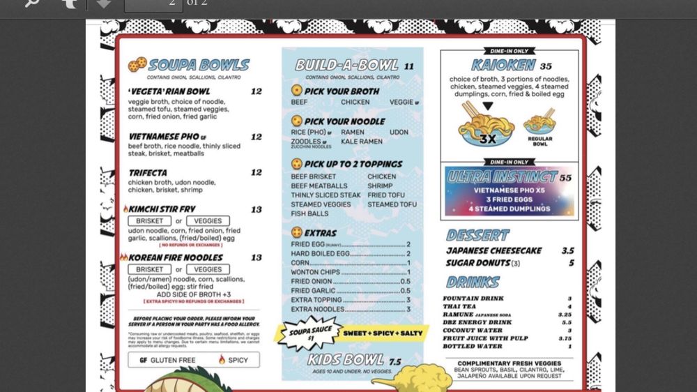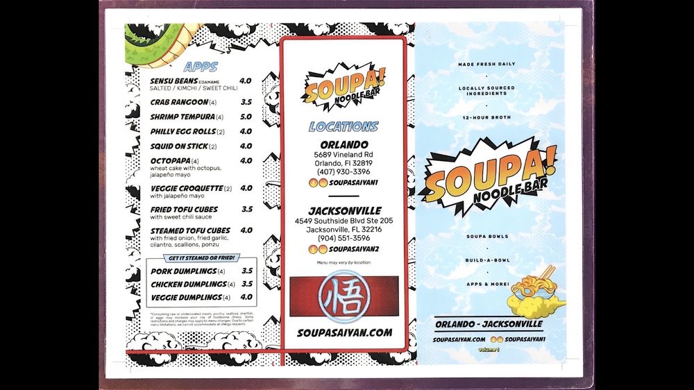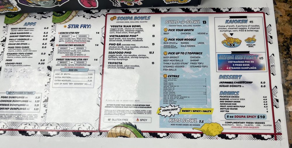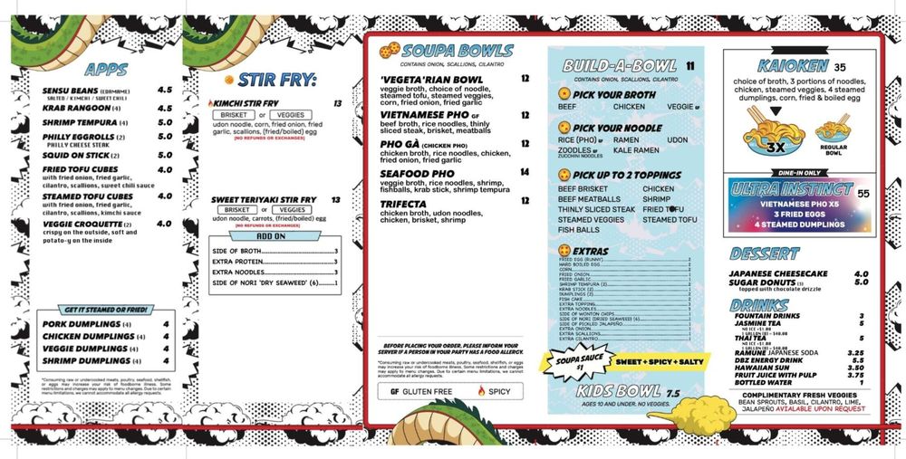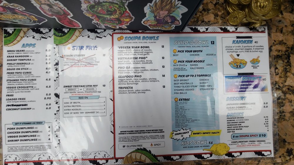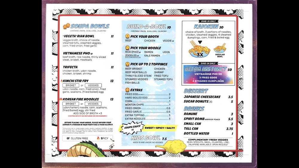 Customers rave about the flavorful dishes and excellent service at Soupa Saiyan. The casual atmosphere, complete with Dragon Ball Z-themed decor, adds to the overall dining experience. With options for vegan and vegetarian diners, as well as gluten-free choices, this restaurant caters to a diverse range of preferences. Whether you're looking for a quick bite or a leisurely meal with friends and family, Soupa Saiyan is sure to exceed your expectations.